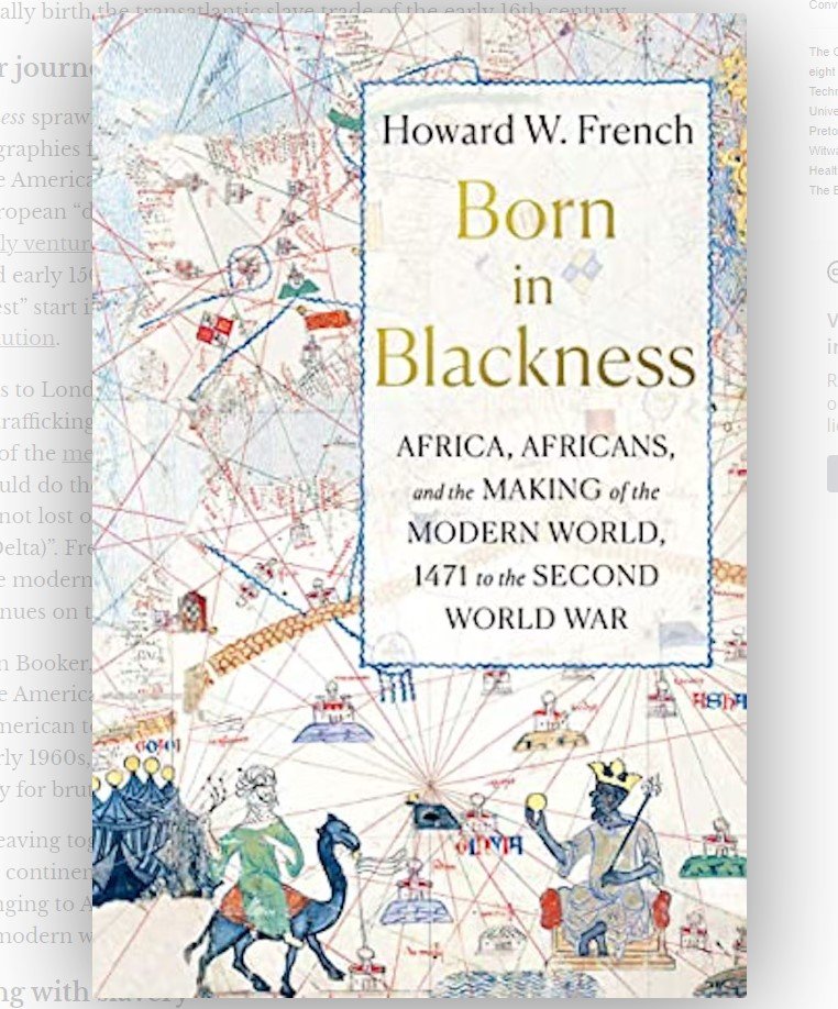 Journaliste, photographe, auteur et professeur Howard W. French’s Born in “Blackness : Africa, Africans, and the Making of the Modern World, 1471 to the Second World War” , est le plus récent d’une longue carrière d’interventions littéraires et journalistiques réfléchies et significatives . Elle exige une explication de la modernité qui place l’Afrique au centre de la construction du monde moderne.