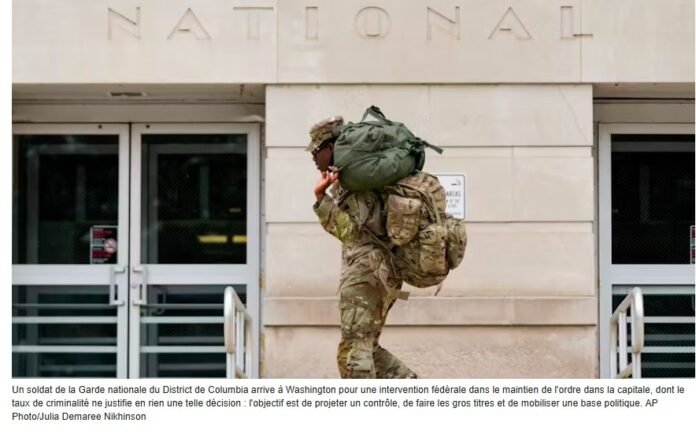 Lundi 11, la Maison Blanche a décrété une intervention fédérale pour la sécurité publique à Washington, DC. Environ 800 soldats de la Garde nationale ont été mobilisés et ont pris le contrôle de la police métropolitaine.