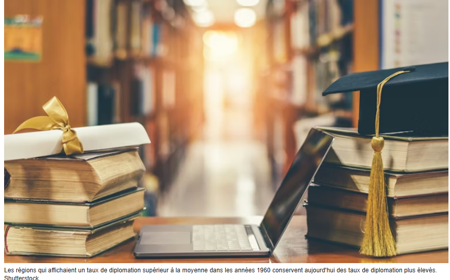 Cet héritage historique perdure. En moyenne, les régions qui affichaient un taux de diplomation supérieur à la moyenne dans les années 1960 conservent aujourd’hui encore des taux de diplomation plus élevés.