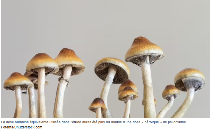Il convient de préciser que, pour ce qui est du dosage de l’animal à l’humain, il ne suffit pas d’ajuster le poids, car les petits animaux ont un rythme cardiaque plus rapide et métabolisent les médicaments plus rapidement. Mais même en tenant compte de cela, la quantité de psilocybine administrée aux souris équivaudrait à l’ingestion de plus de sept grammes de champignons par un humain. Pour rappel, c’est plus du double de ce que l’on considère comme une dose forte ou « héroïque » pour la plupart des gens ; une dose typique se situe entre un et trois grammes.
