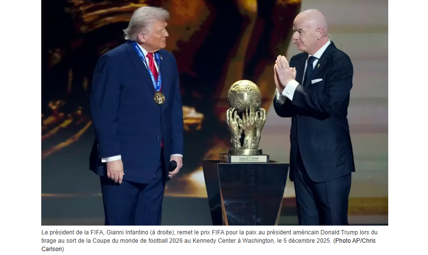 Infantino a assisté à l’investiture de Trump et lui a remis, non sans controverse, le premier prix Nobel de la paix de la FIFA . Plus récemment, il a signé un accord avec le Conseil pour la paix de Trump au nom de la FIFA .