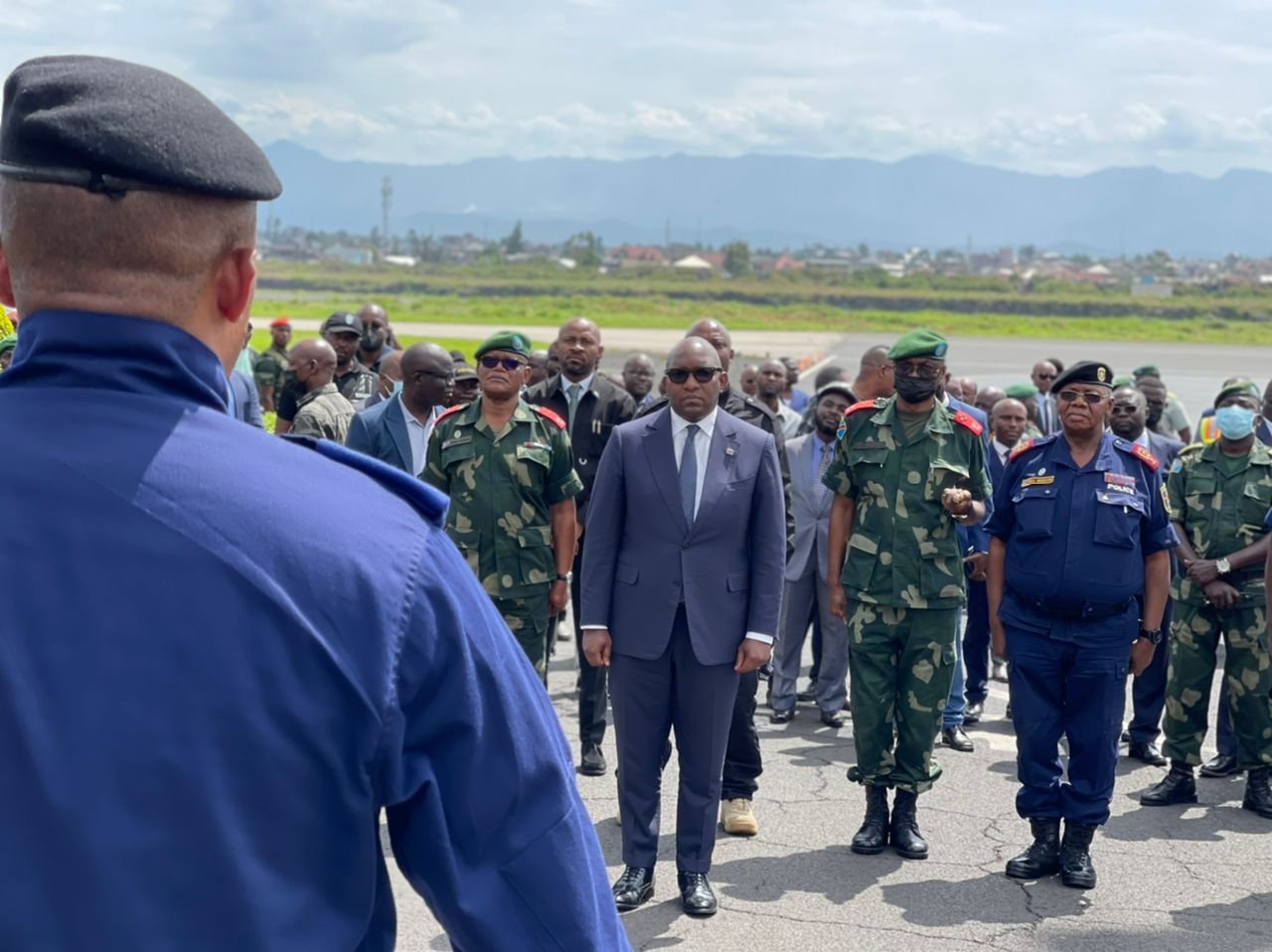 » Cette visite s’inscrit dans le cadre de notre action gouvernementale qui démontre d’abord notre attachement à cette province du Nord-Kivu et notre attachement aux populations de cette province. Ça s’inscrit aussi dans notre détermination pour ramener la paix dans cette partie du pays. Nous sommes venus avec une forte délégation gouvernementale, accompagné du Chef d’État Major général des FARDC, ainsi que du Commissaire général de la PNC, mais aussi il y a une délégation de l’Assemblée nationale et du Sénat dans le cadre des évaluations que nous faisons avec eux au niveau du parlement « , a-t-il déclaré.